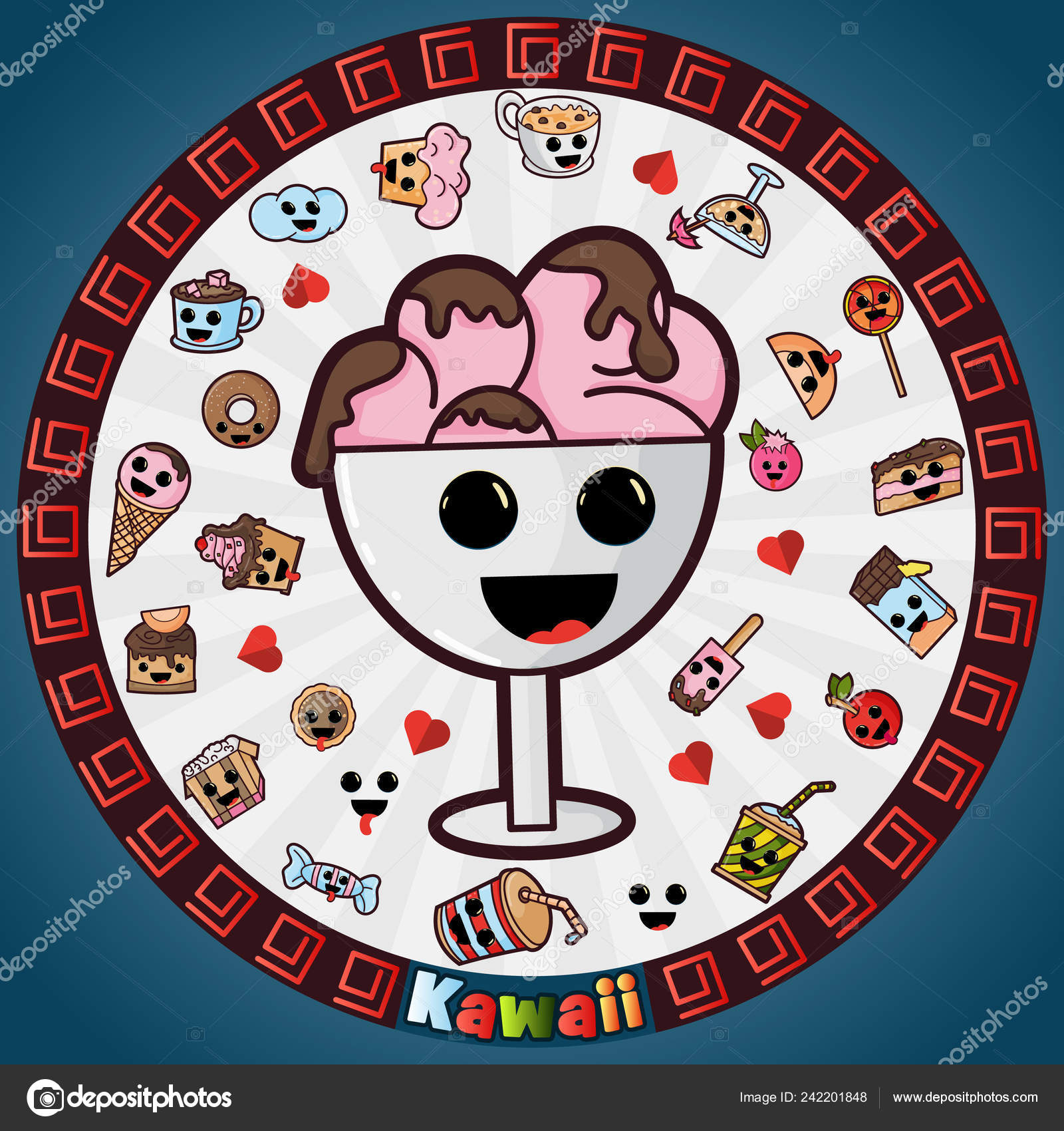 Illustration In Kawaii Style1cute Nice Lovely Drawings In Circular Ornament Sweet Pastry Food And Drinks Sticker Design For Decoration Stock Illustration Download Image Now Istock
