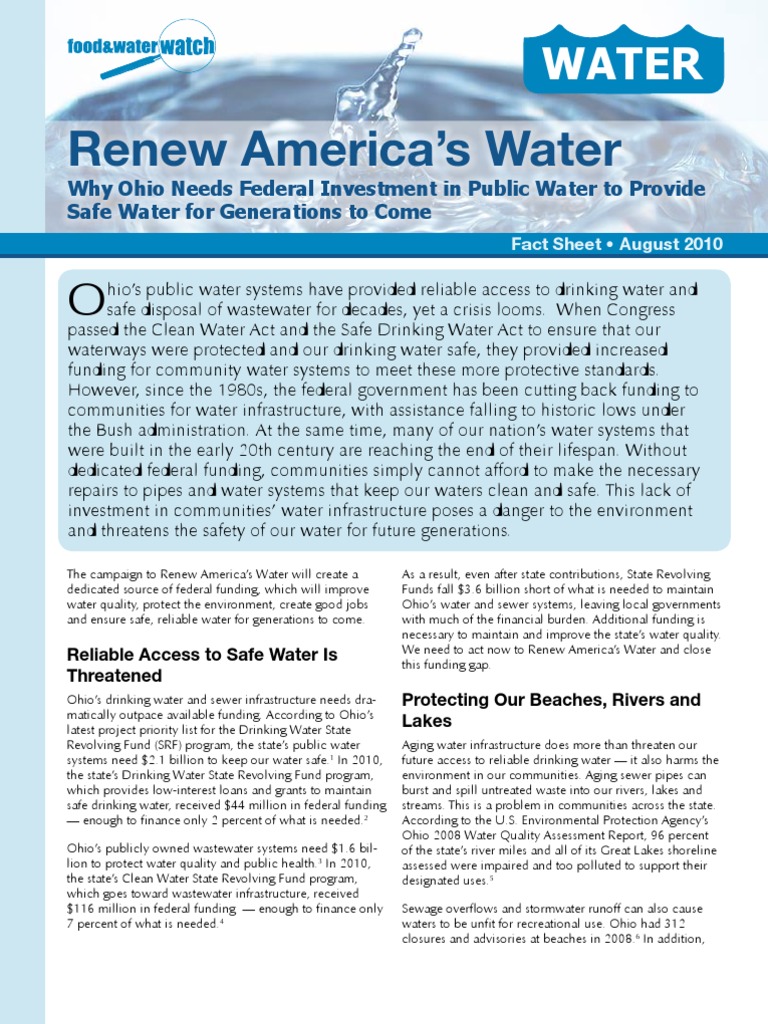 Why Ohio Needs Federal Investment In Public Water To Provide Safe Water For Generations To Come Drinking Water Water Quality