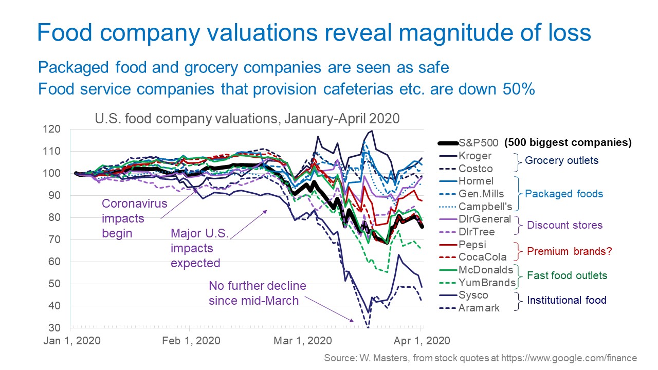 William A Masters On Twitter Stock Prices For U S Food Companies Track Investor Expectations About Future Covid Impacts For Packaged Foods Restaurant Chains And Food Service 3 4 Https T Co Fjwon5qjdz