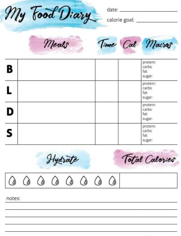 Food Diary Template Free Printable Track Food And Water Intake