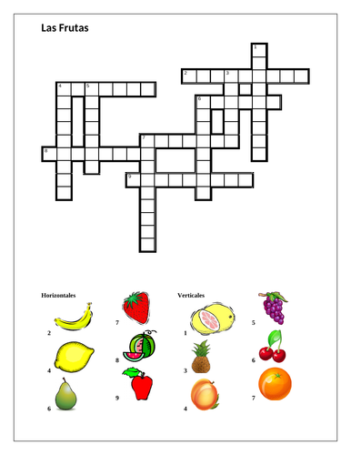 Frutas Fruit In Spanish Crossword Teaching Resources