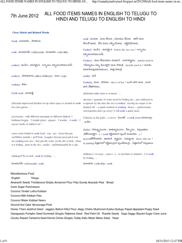 Food Items English From A To Z Facebook