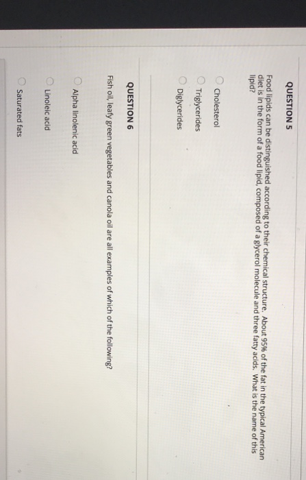 Solved Question 5 Food Lipids Can Be Distinguished Accord Chegg Com