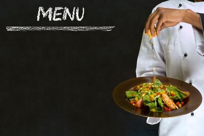 Chef With Healthy Salad Food On Chalk Blackboard Menu Background Art Print Alistaircotton Art Com