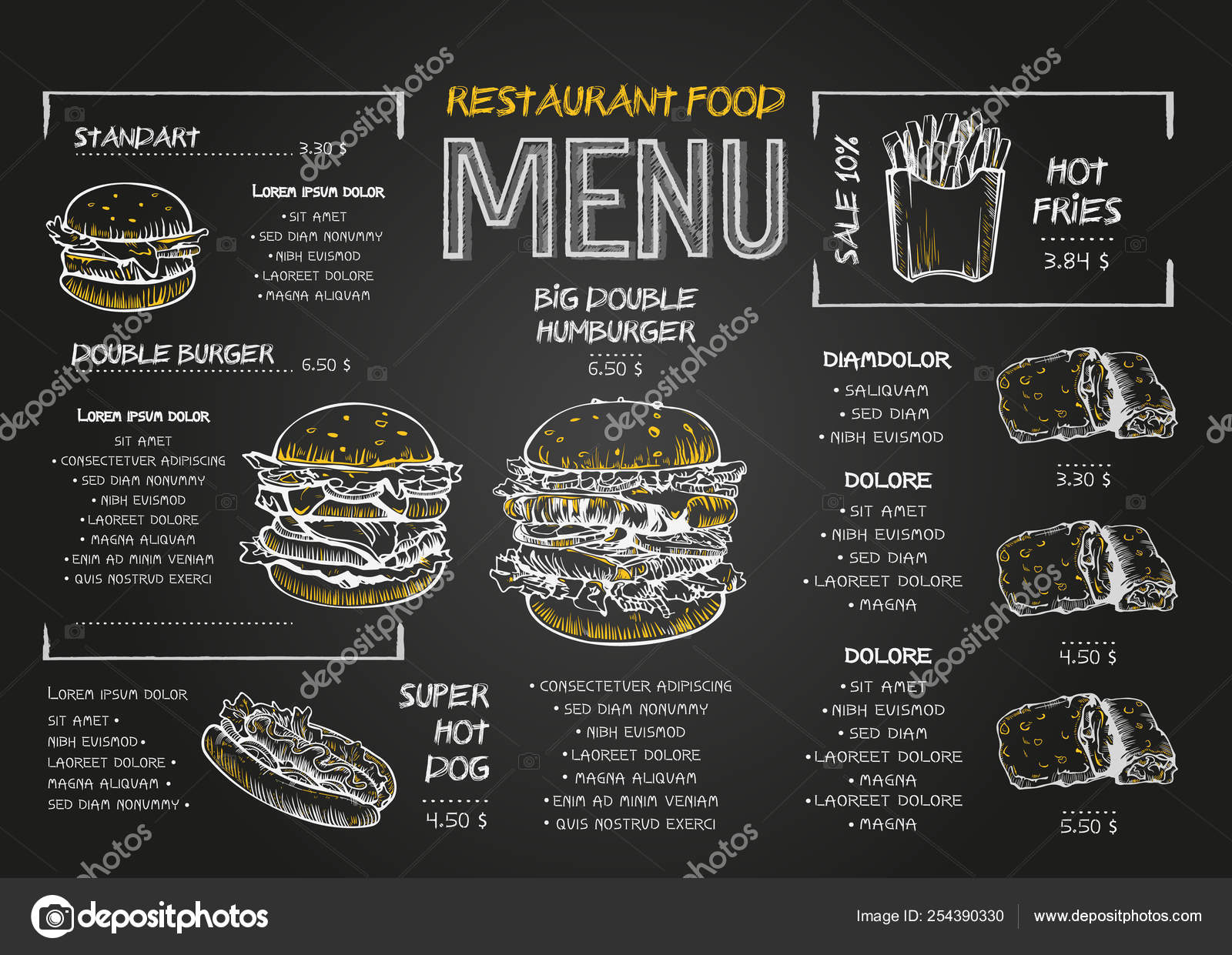 Restaurant Food Menu Design Template With Chalkboard Background Vintage Chalk Drawing Fast Food Menu In Vector Sketch Style Stock Vector C Volmon Tut By 254390278