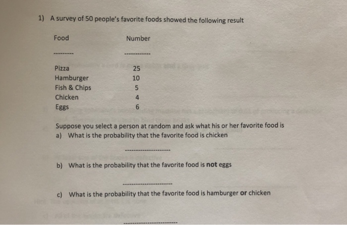 Solved 1 A Survey Of 50 People S Favorite Foods Showed T Chegg Com