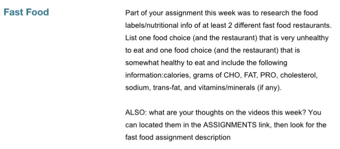 Fast Food Part Of Your Assignment This Week Was To Chegg Com