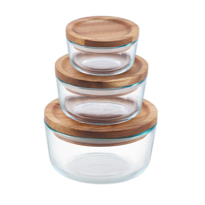 Pyrex 6 Piece Glass Food Storage Container Set With Wood Lids Bed Bath Beyond