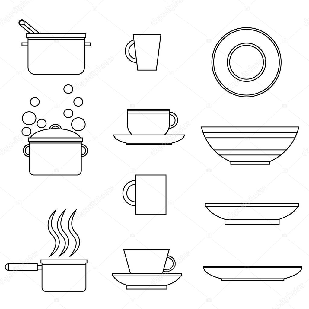 Line Drawing Of Food And Kitchen Utensils Vector Free Vectors Ui Download