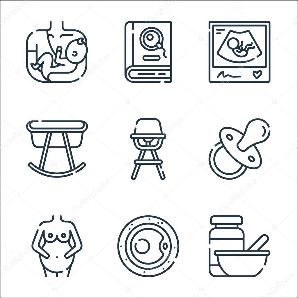 Maternity Line Icons Linear Set Quality Vector Line Set Such As Baby Food Ovum Pregnant Pacifier High Chair Crib Ultrasound Book Premium Vector In Adobe Illustrator Ai Ai Format